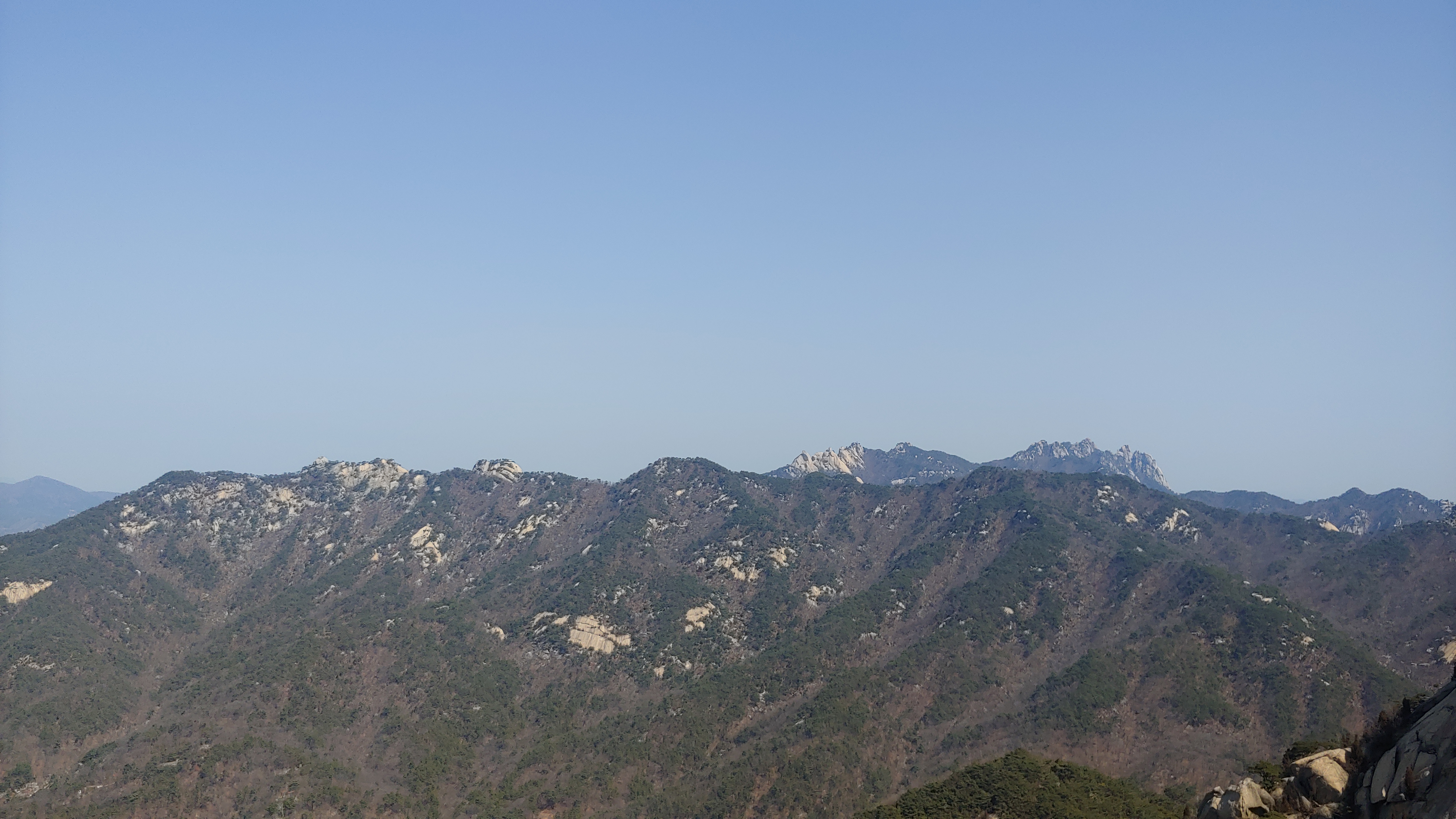 바람이 많고 온도는 낮았지만, 예전같은면 미세먼지 많은 봄날에 보기좋은 하늘이 펼쳐져 코로나로 위축되었던 가슴이 탁트이는 산행이었다.