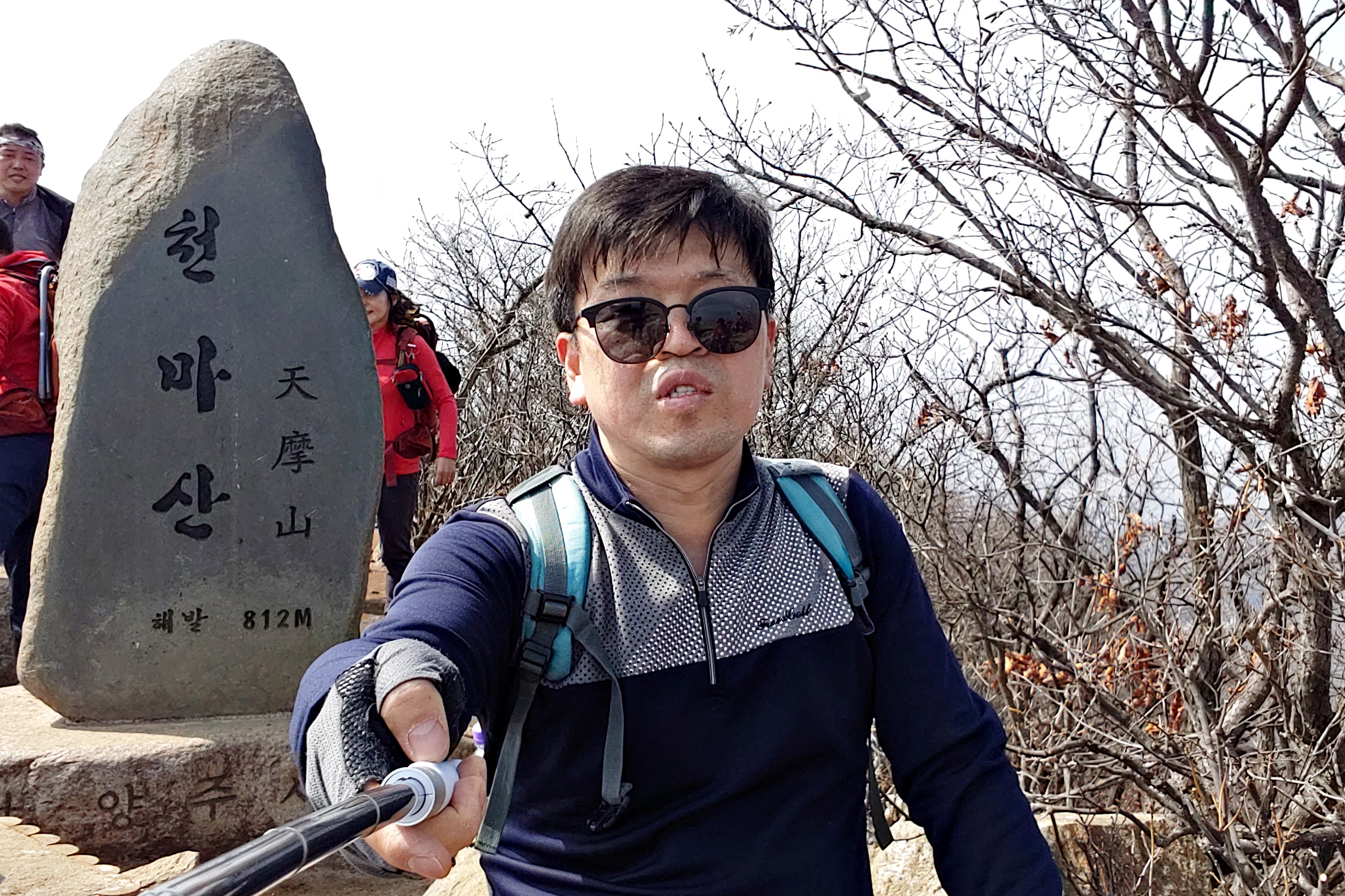 천마의 집(아마도 서울시교육청 청소년 수련시설을 부르는 명칭인 듯 하다) 포인트에 천마산 산행의 입구임을 알리는 시설물들이 서있다. 거기서부터 정상까지는 완만함없이 경사가 이어진다. 그 거리가 짧지만 산행이 익숙치않은 분들께는 좀 힘들 수도 있겠단란 생각이 든다. 임꺽정의 이야기가 담긴 꺽정바위(사람인자 모양의 바위굴)를 지나는 어느새 정상이다. 정상에 이르니 갑자기 어디서 나타났는지 모를 산행객들로 정상 인증사진 대기줄이 길게 늘어섰다. 그 줄에 끼여 셀카로 인증사진을 찍고 챙겨운 김밥과 양갱으로 간단한 점심을 하고 돌핀샘 방향으로 하산했다.