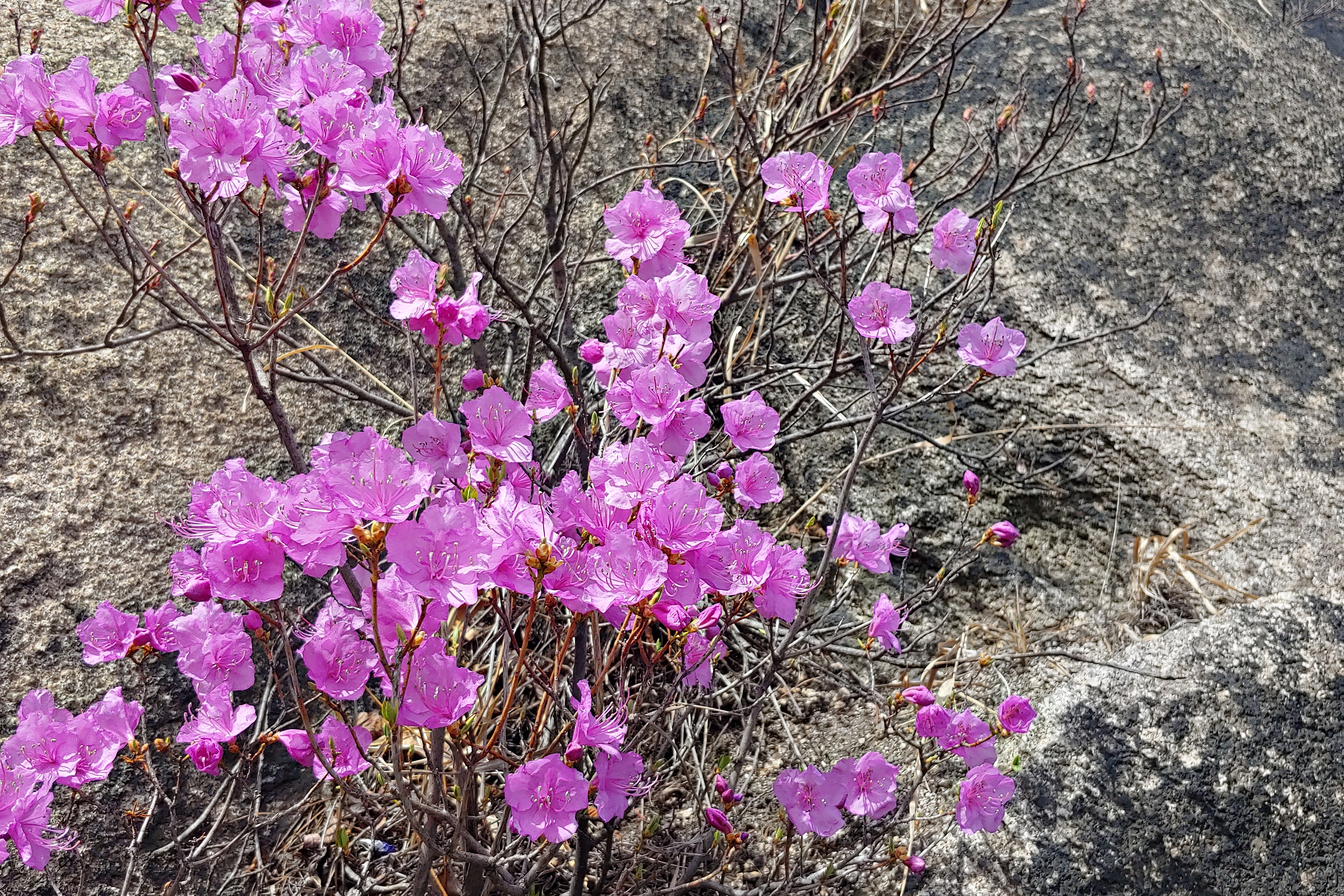 기차바위를 지나 홍지문방향으로 가는 능선에는 진달래가 가득했다. 동행인 모두가 한결같이 '여기가 진달래 맛집이었네' 감탄했다. 또한 건너편 북한산 자락에 가득한 진달래 풍경과 어우러져 세상에 가득찬 봄기운을 느끼게 하는 산행코스였다. 아무 다음 봄이 오면 또 생각나는 코스가 될 듯하다.
